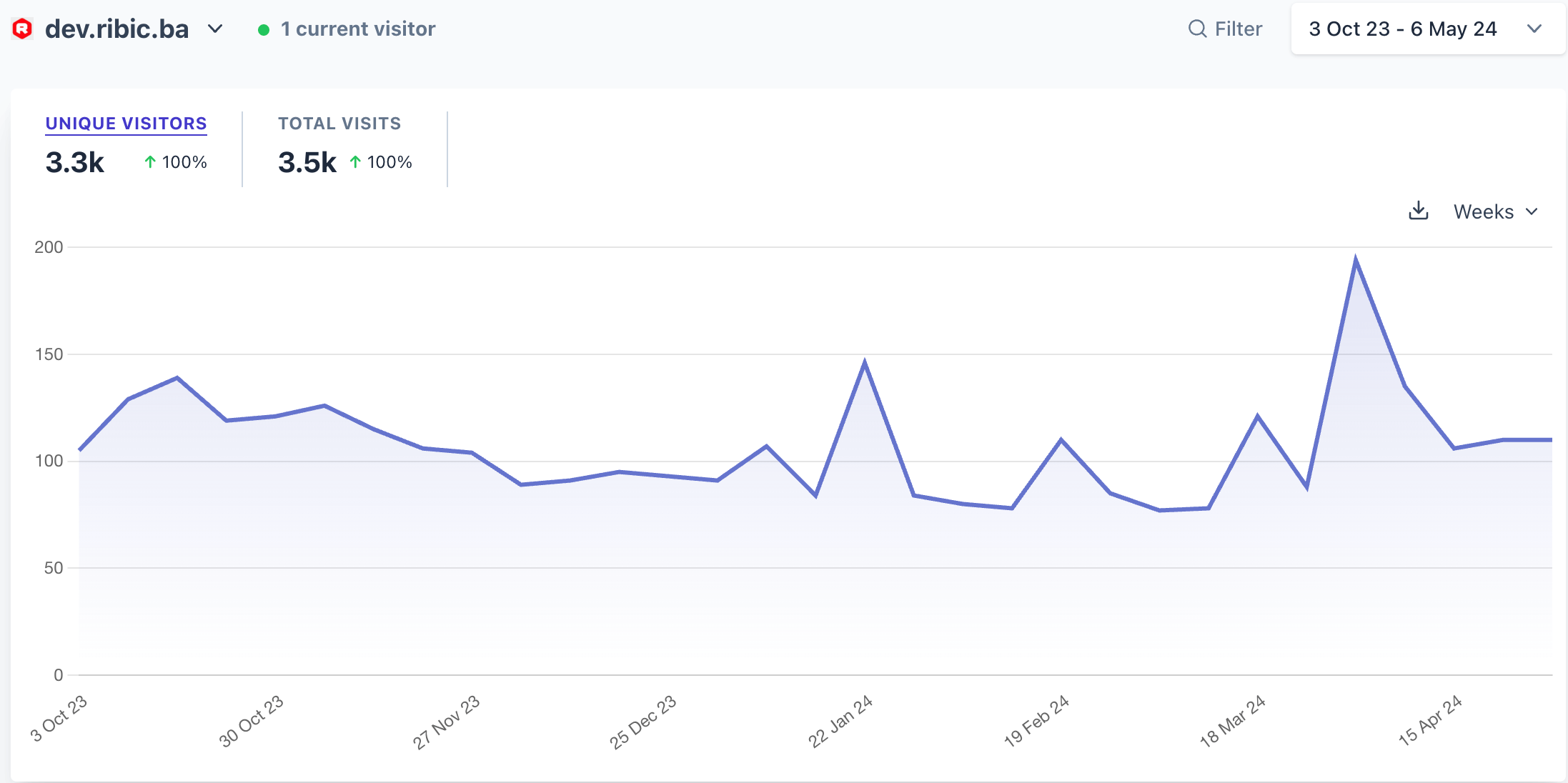 Some of my posts went viral on Reddit and HackerNews, which brought a lot of traffic to my blog. It averaged around 10k unique visitors per month. (~300 per day). I was quite happy with the traffic, as I was writing mostly for myself and to document my programming journey.